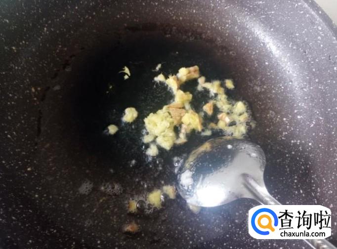 开火下油,放姜蓉进去爆出味来。