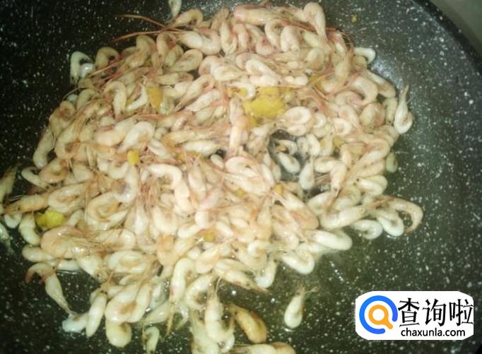 然后混合小虾大火翻炒一下,再下1勺生抽、1勺料酒。
