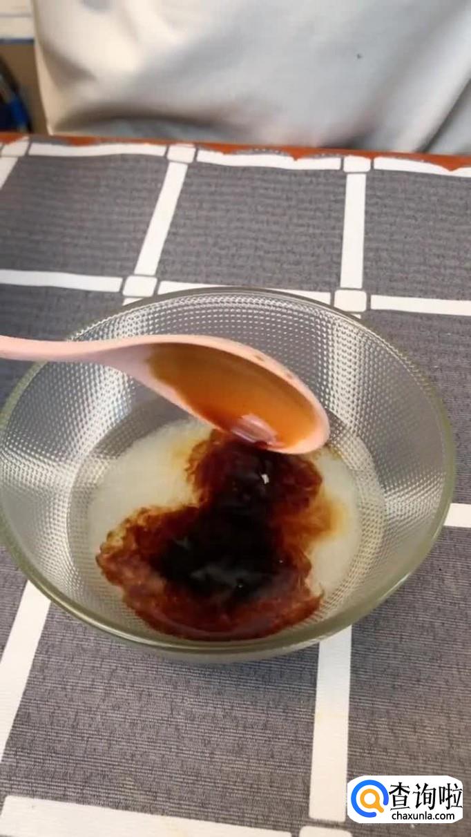 接着往碗里面加入适量的白糖,白米醋,生抽和盐巴调制好,如下图所示。