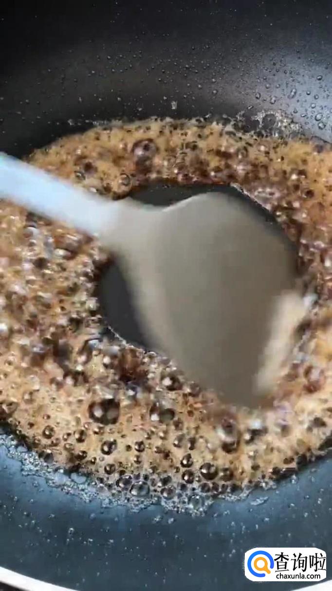 然后把刚才调制好的调料倒入锅中煮至沸腾,如下图所示。