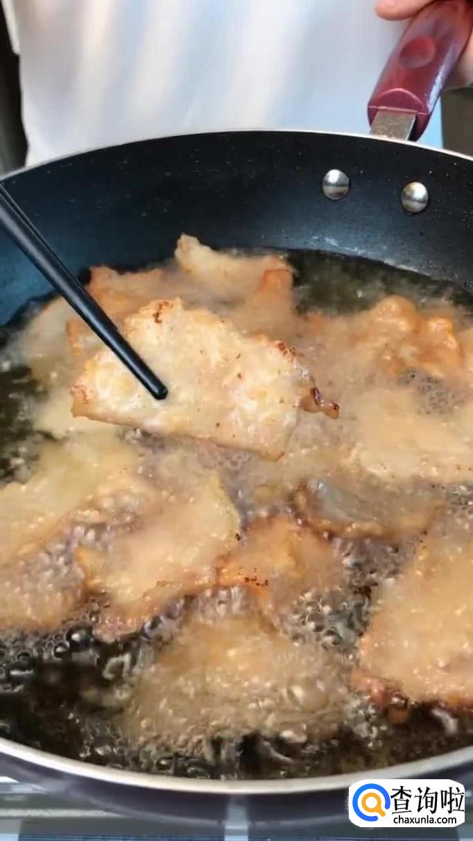 接着再次把里脊肉倒入锅中炸三分钟,如下图所示。