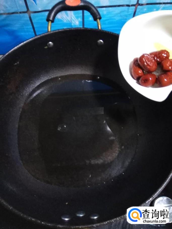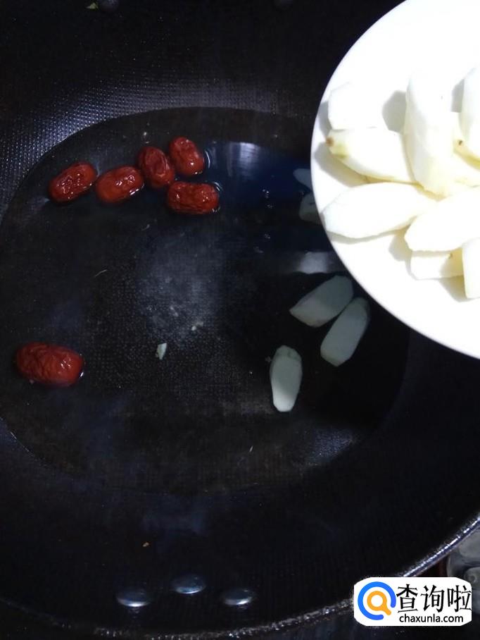 锅中放入适量清水,然后将大枣放入锅中,将准备好的山药块也倒入锅中。