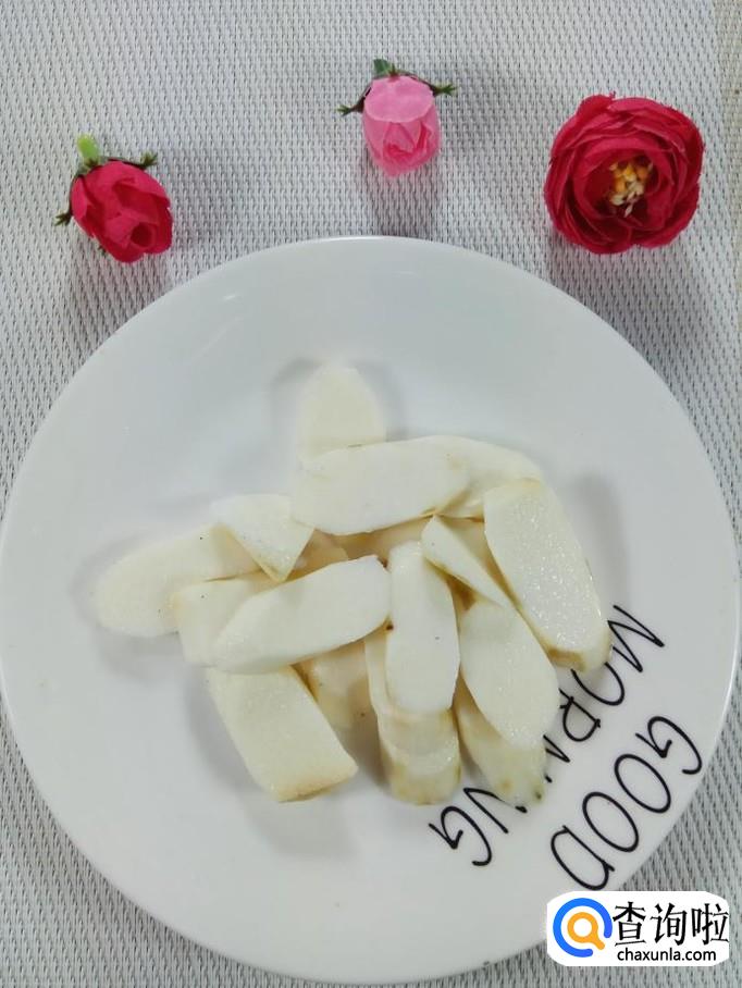 准备一根铁棍山药洗净去皮后切成块,铁棍山药的营养价值比一般的山药更高一些,处理的时候尽量不要让山药的粘液粘在手上,以免皮肤发痒。