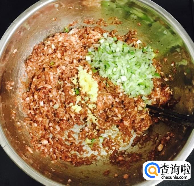 剁碎后的小白菜再挤一下水分放入肉馅中再次搅拌均匀即可