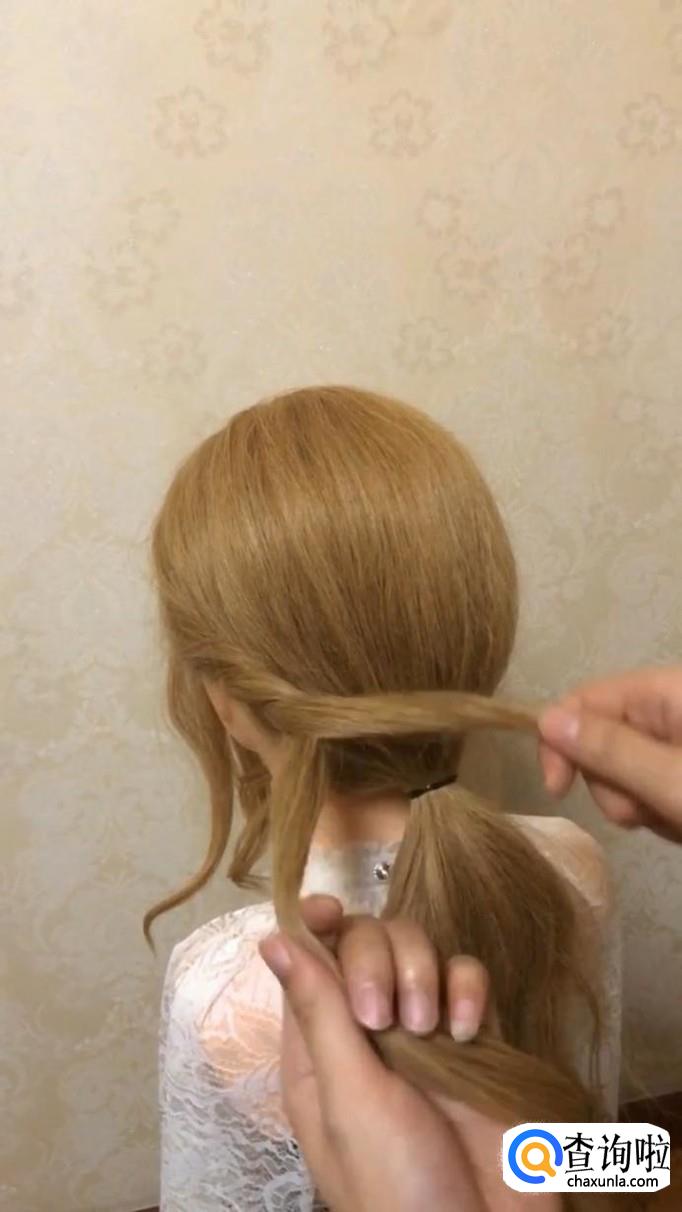 扎完后,在头发的头部轻轻扯出少许,使发型更蓬松、自然。