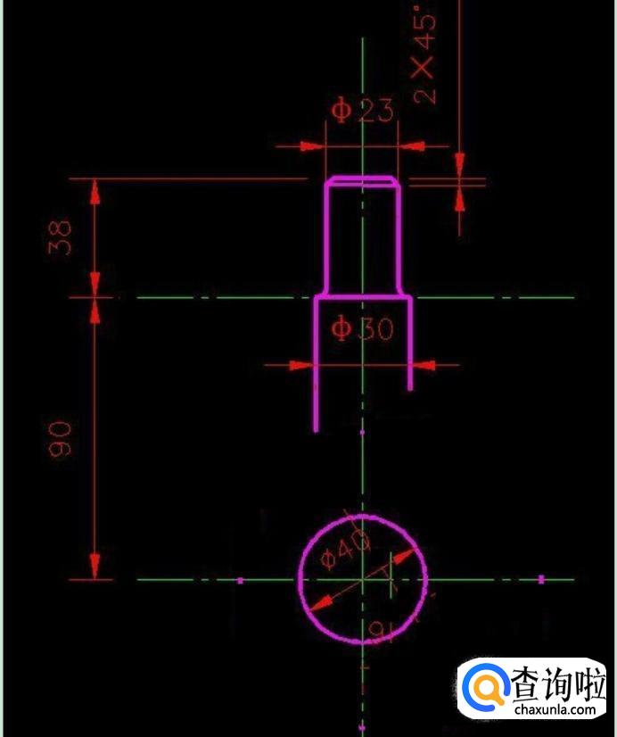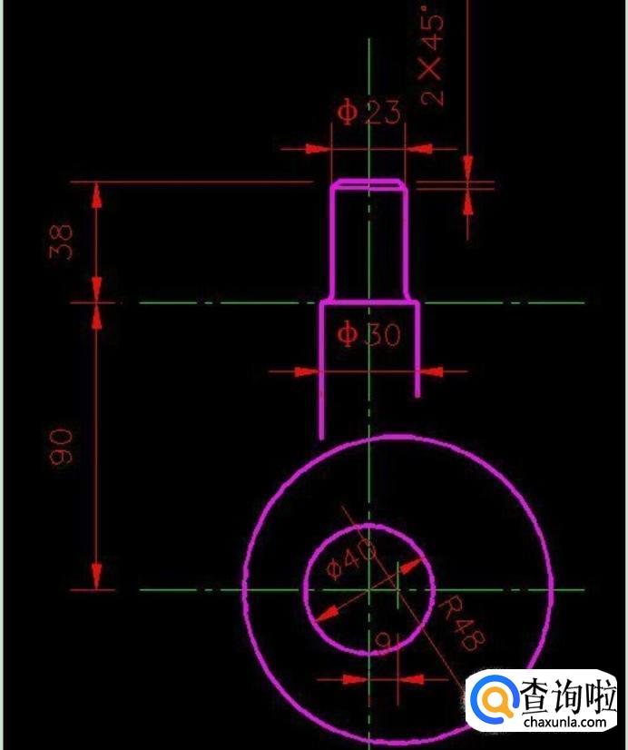 接着我们再画上起重机的上面部分,还有画一个直径40的圆,如图所示。