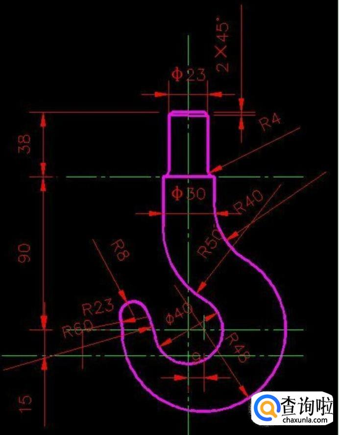 机械制图中的起重钩的画法首先是需要确定各部分的详细尺寸(吊钩的大小),画法中主要是圆弧的连接问题,过去采用圆规画,比较麻烦且不十分准确,现在多数采用CAD作图,简单准确,那么如何画机械制图之起重钩呢?