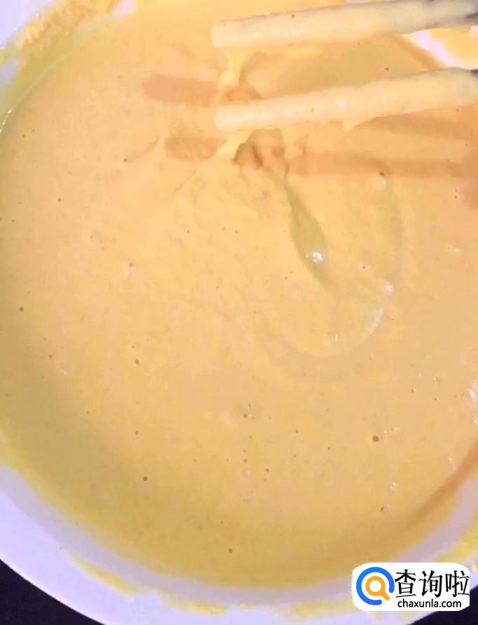 接着我们用筷子将面粉搅拌一下,搅拌成浓稠的面糊备用
