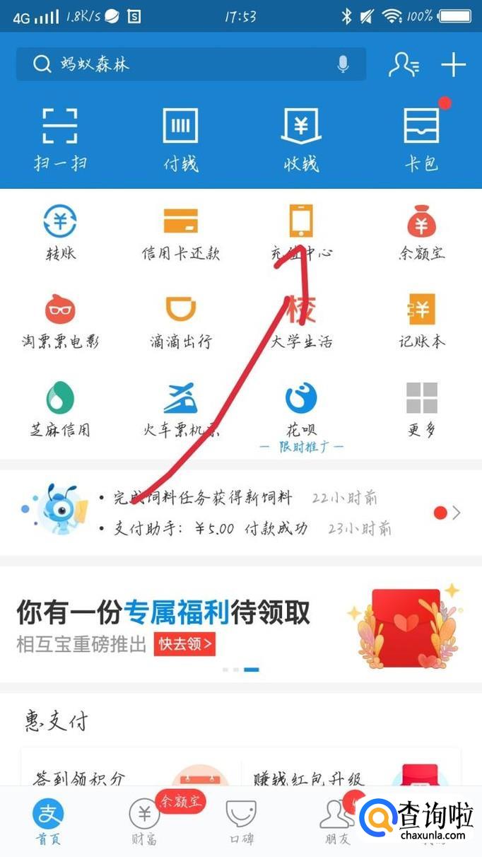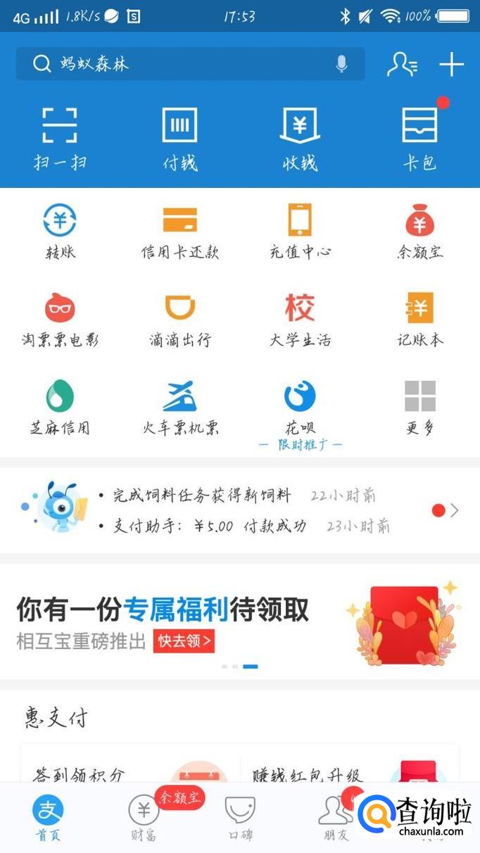 首先打开支付宝这个app,如图1所示。进入支付宝后你会看到出现一个新的界面,如图2所示。