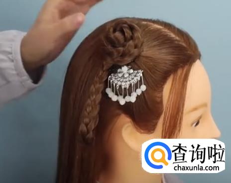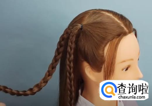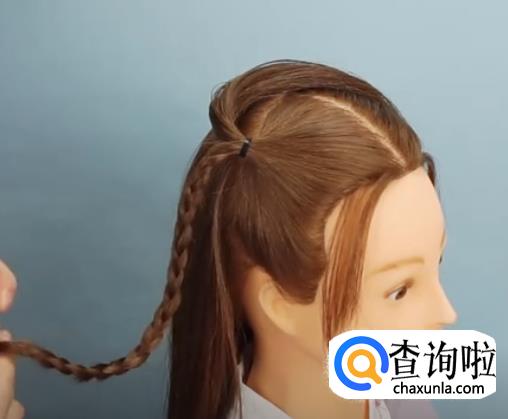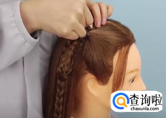 并将剩下的头发编成三股辫。
