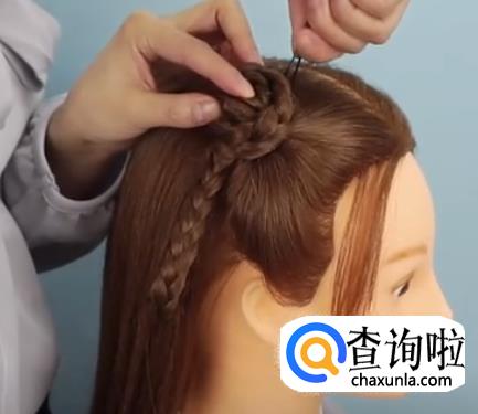 然后把另一条三股辫盘起来,同样的,用小夹子固定好。