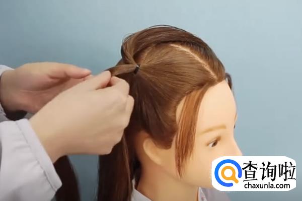 然后在右边扎起的头发上分一缕头发出来。