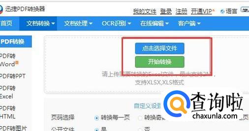 文件上传好之后我们就可以对excel文件进行文件的转换了