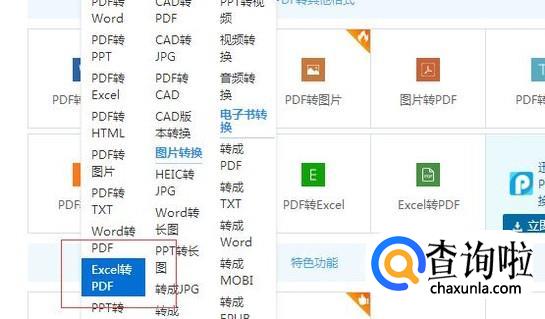 我们选择第二个功能栏“其他文件转PDF”——“excel转PDF”然后进行点击