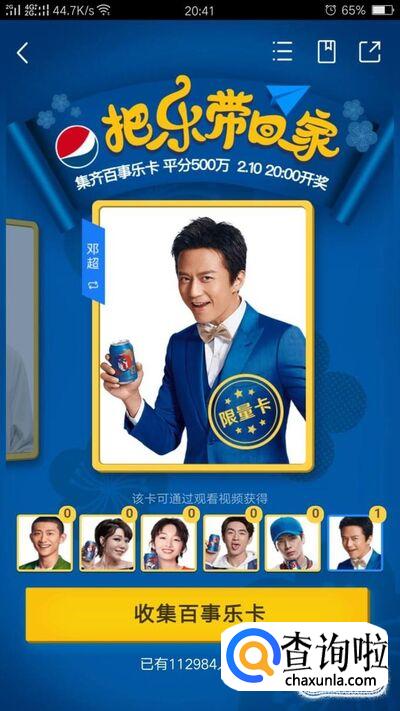 新年将至,集齐百事卡,把乐带回家。集齐六张明星百事卡就可在2018年2月10日晚八点瓜分500万。六位明星分别为张一山、吴莫愁、周冬雨、林更新、王嘉尔、邓超。
