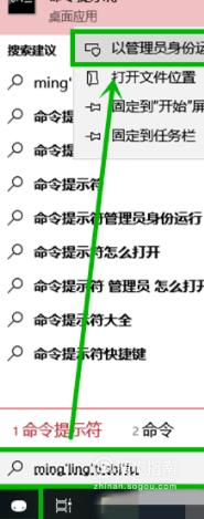 点击任务栏小娜图标,然后在搜索框输入“命令提示符”,右击搜索到的选项,然后选择【以管理员身份运行】