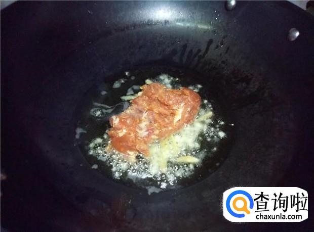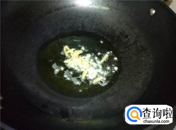 热锅下油,放入蒜蓉和姜丝,扁出香味。