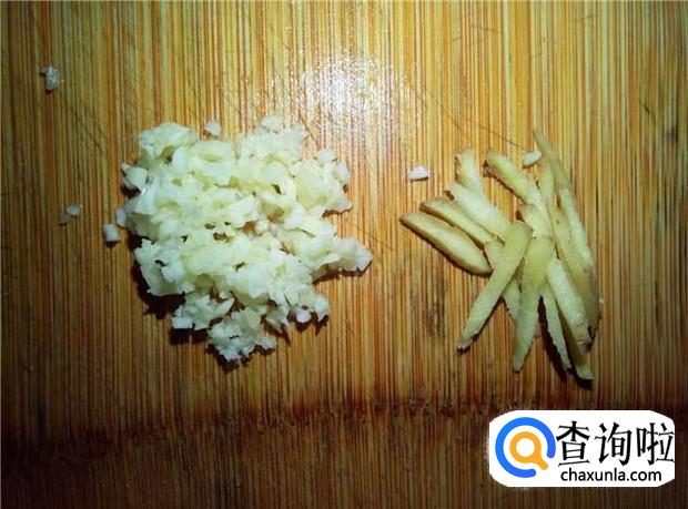 蒜头剁碎,姜切丝,香葱切碎,备用。