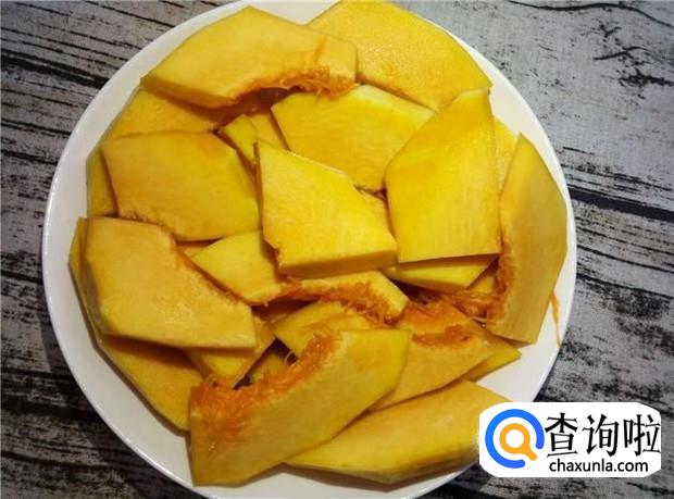 南瓜削皮,清洗干净,切成薄片。