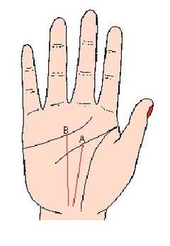 事业线是从手掌底部网上升的纹,有的人可以直抵中指根部,也可称为命运纹。有的事业线不是一条直纹,而是断断续续好几条,表示工作不稳定,或者经常变更工作环境。事业纹升到脑纹(智慧线)就停止,表示是由自己智慧决定而停止工作。如果升到岛纹而停止,则表示因感情问题而停止工作。
