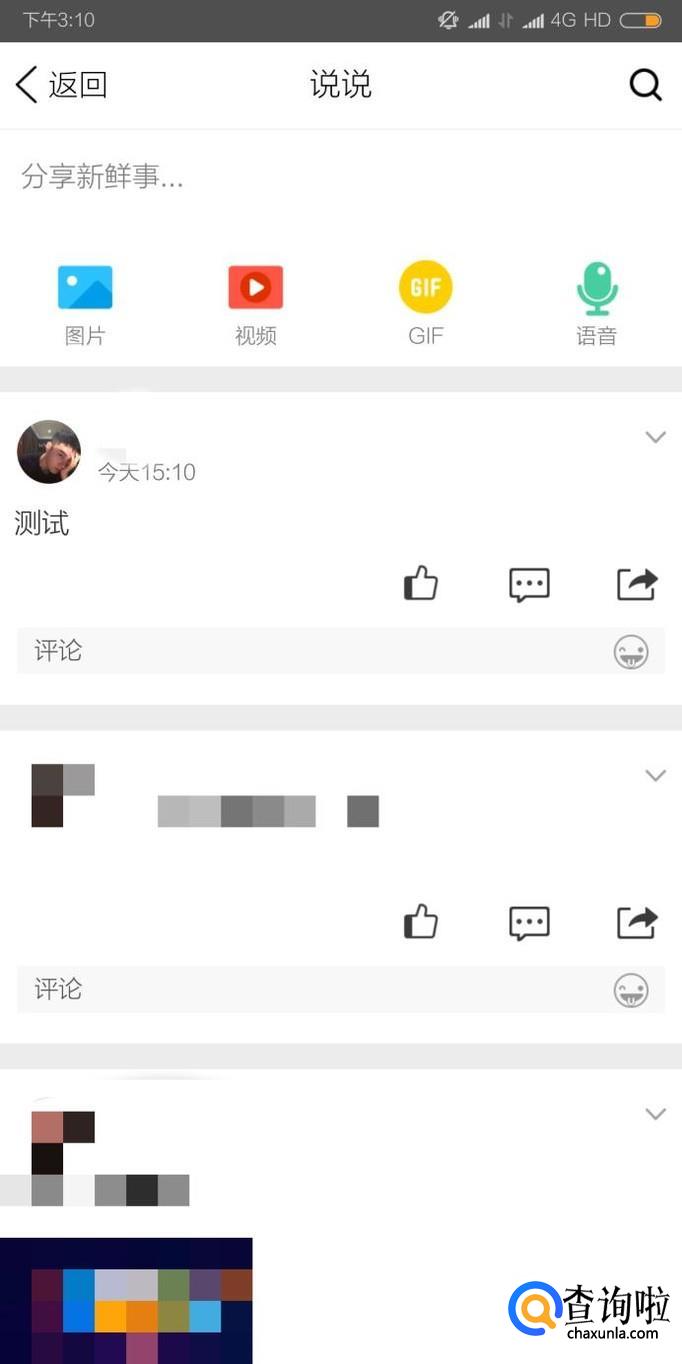 发表朋友圈动态后,就可以在QQ空间看到朋友圈刚才发布的动态了。