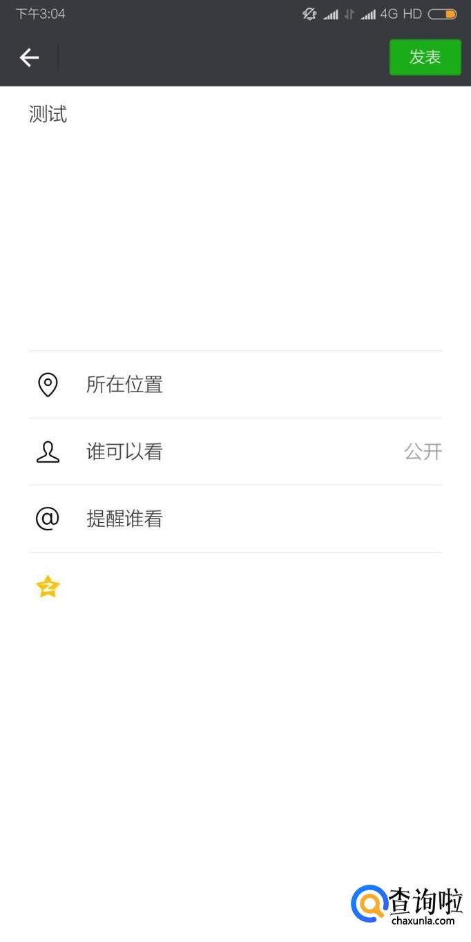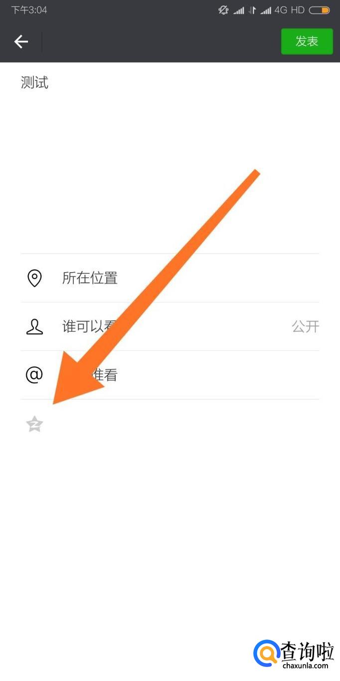 进入到朋友圈动态编辑页面后,点亮左下角的空间图标即可把该条动态同步发布到QQ空间。