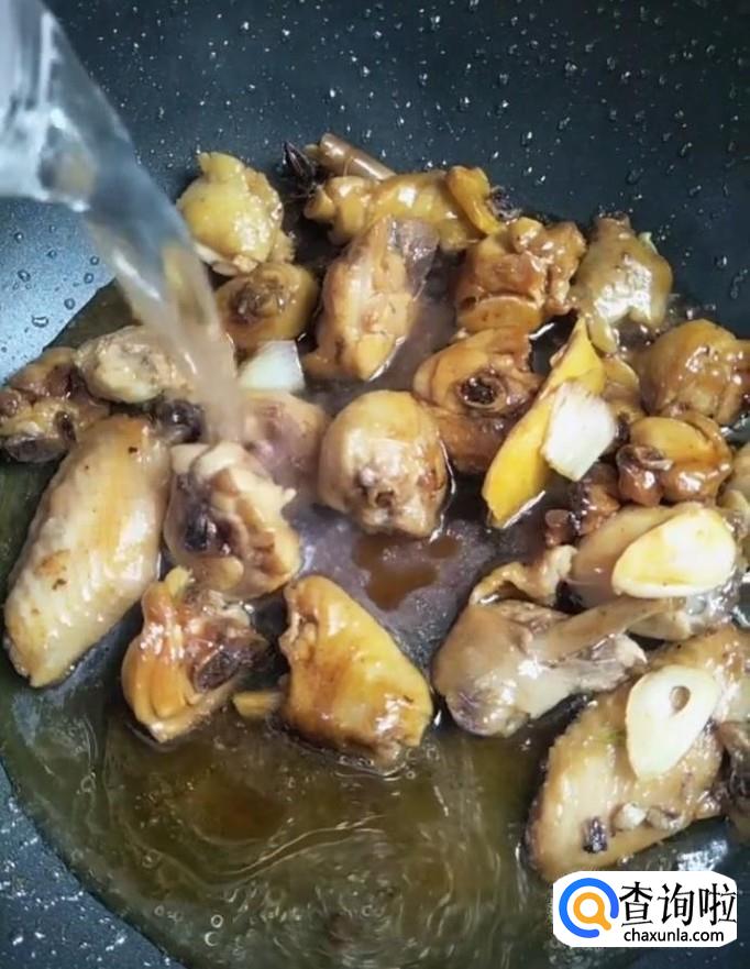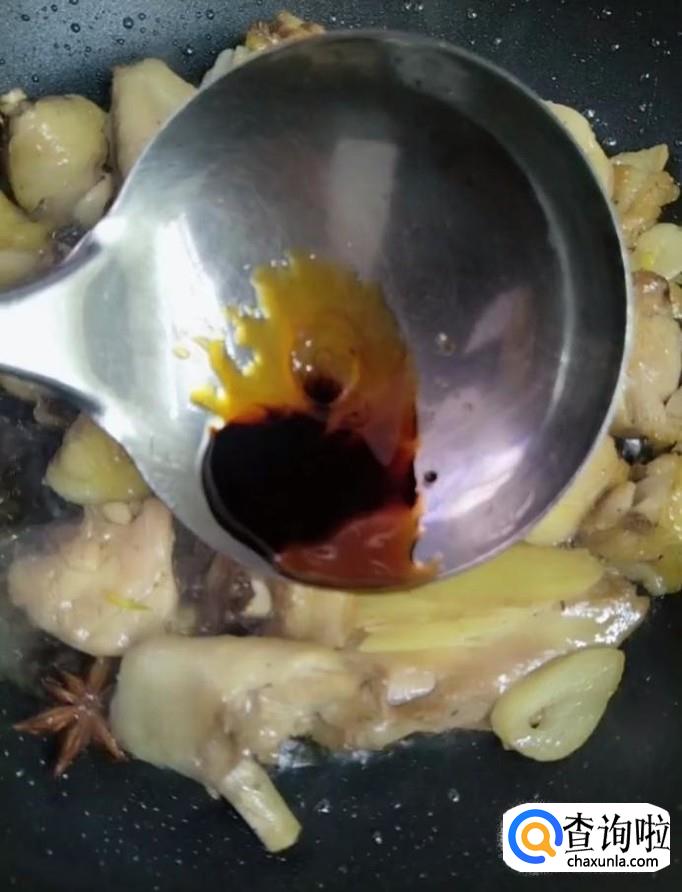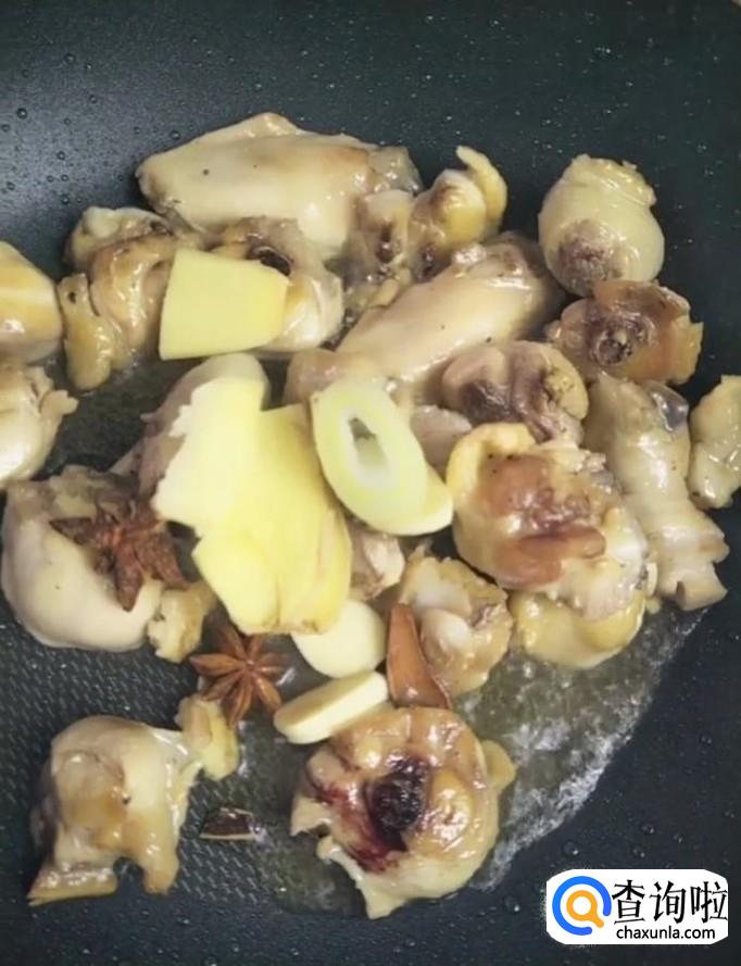 接着我们放入葱姜,八角,花椒,桂皮,香叶,继续翻炒,炒出香味