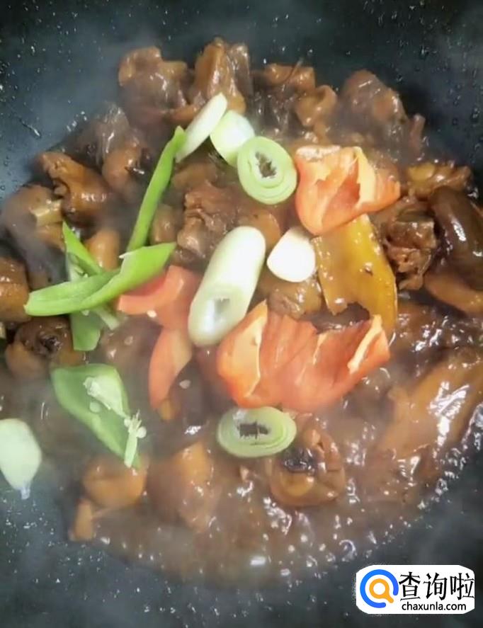 最后放入青红椒与葱蒜,开大火收干汤汁,美味的黄焖鸡米饭就制作完成啦!