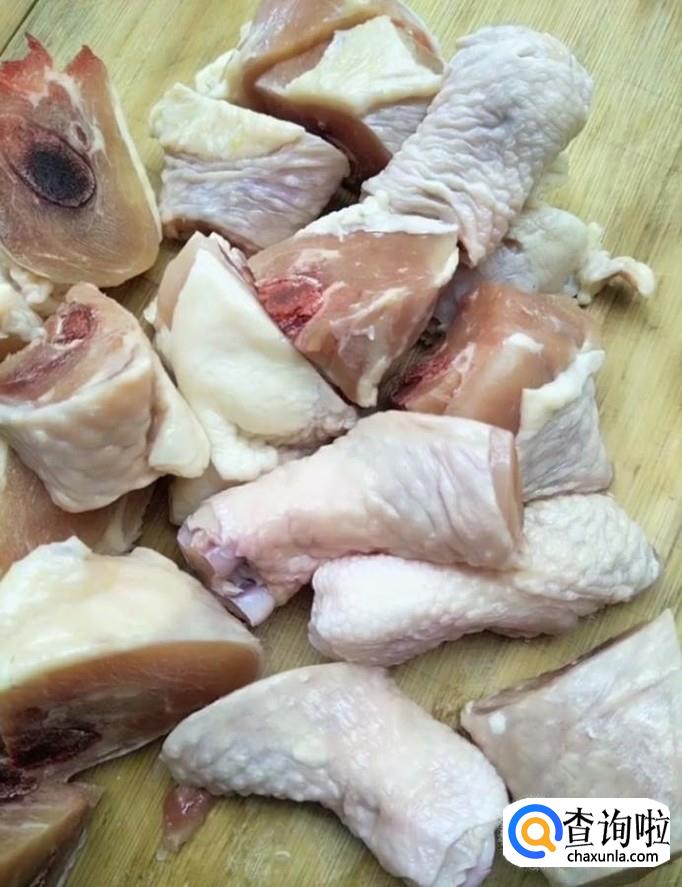 首先我们将鸡腿清洗干净,用刀剁成小块备用