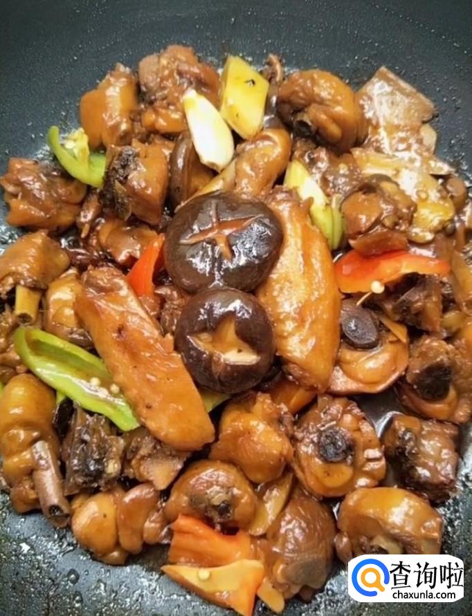 鸡腿,葱姜,八角,桂皮,香叶,花椒,蚝油,酱油,老抽,清水,盐,鸡精,白糖,十三香,香菇,蒜,青红辣椒
