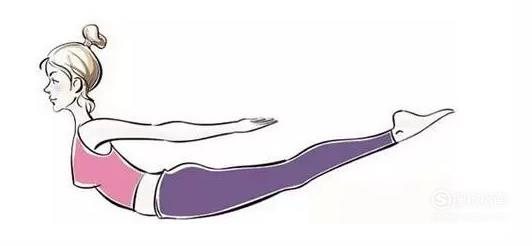 与此同时,双脚轻轻抬起,腰底部肌肉收缩,尽量让肋骨和腹部支撑身体,持续3~5秒,然后放松肌肉,四肢和头部回归原位休息3~5秒再做。