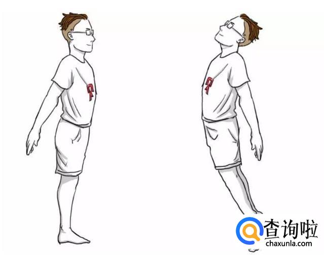 站立姿势,肩向后平移,双臂轻轻向后,双手掌平伸,掌心相对或向后,模拟燕子俯冲时收起翅膀的动作。以腰底部为中心轻轻向前,从侧面看略有点“挺肚子”的感觉。