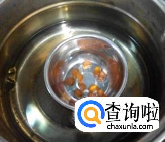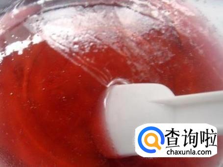 将QQ糖放在小盆中,放小盆放入开水锅中加热,使QQ糖融化至膏状,用小勺搅拌均匀。