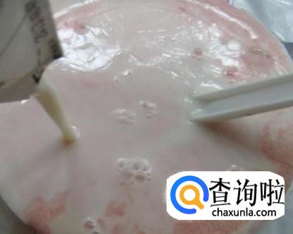 趁热将热牛奶倒入融化的QQ糖中,再搅拌均匀。