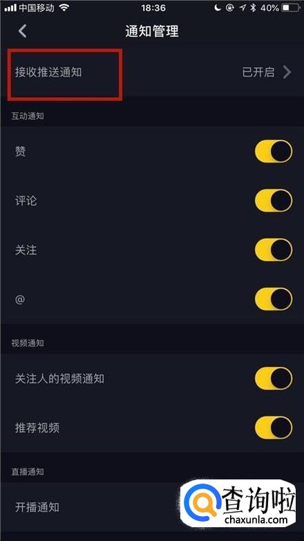 然后点击接收推送通知,如下图所示。