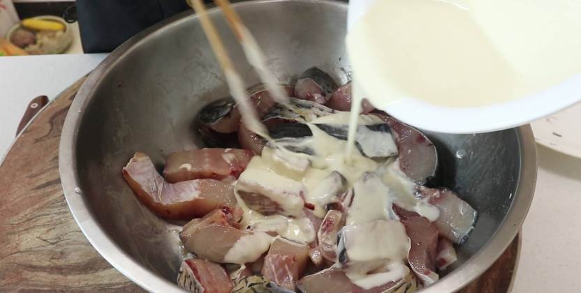 1、鱼块不能直接裹粉,要用调味料腌制一下,去腥又增味,腌制时,加生姜、食盐、料酒、胡椒粉,抓拌均匀腌制,至少半个小时;