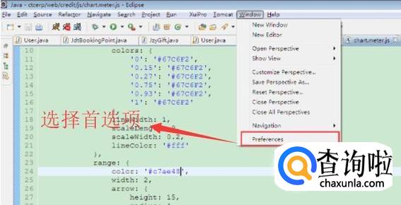 首先打开eclipse软件,点击顶部的windows菜单,在下拉菜单中我们选择Preference选项,如下图所示