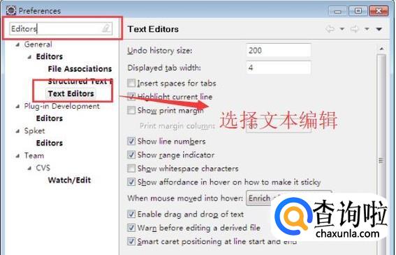 接下来在Preference界面中,我们找到Text Editors选项,如下图所示