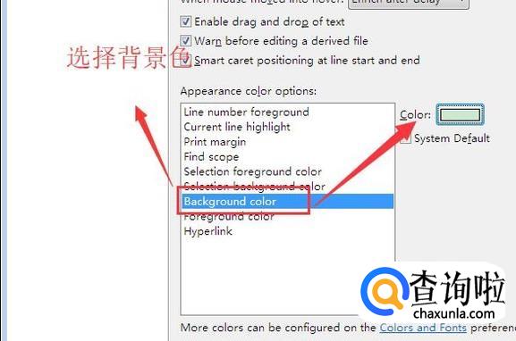 在Text Editor的右侧我们找到选择Background Color选项,然后点击旁边的颜色编辑器,如下图所示