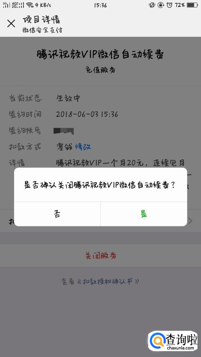 在点击了关闭服务之后,会让你再次确认是否关闭自动扣款服务,点击确认即可。
