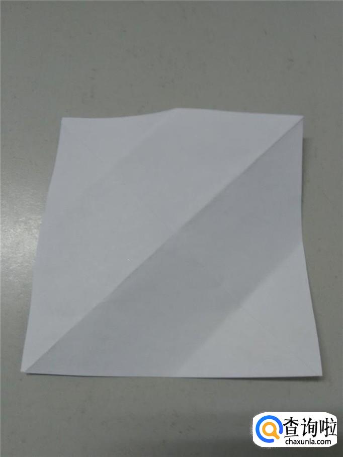 先把正方形纸下方的角往上对折,然后打开。