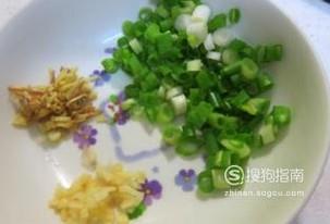 将小葱,蒜,姜切碎备用,小葱尽量多一点。