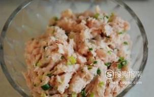 将五花肉和虾仁洗净,在菜板上剁成肉馅备用。