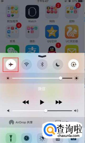 从屏幕下方上扫呼出控制中心,找到飞行模式的开关,点击打开,等待十几秒后再次点击关闭。