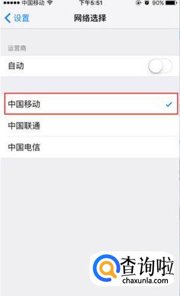 第三步,稍后会显示出网络运营商,用户只需根据自己的手机卡选择对应的运营商即可。比如中国移动用户可以选择“中国移动 ”。