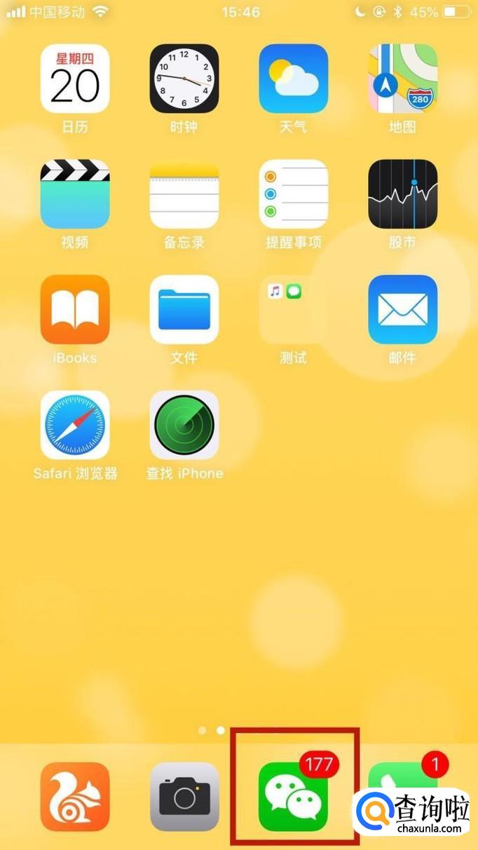 首先在我们的手机桌面上找到微信并点击它,如下图所示。