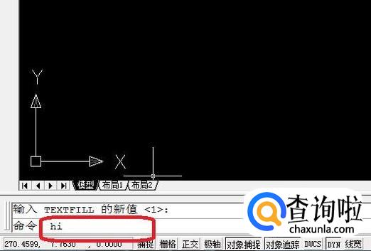 在下方命令栏中输入命令“textfill”(表示控制打印和渲染时TrueType字体的填充方式),敲击回车确认。