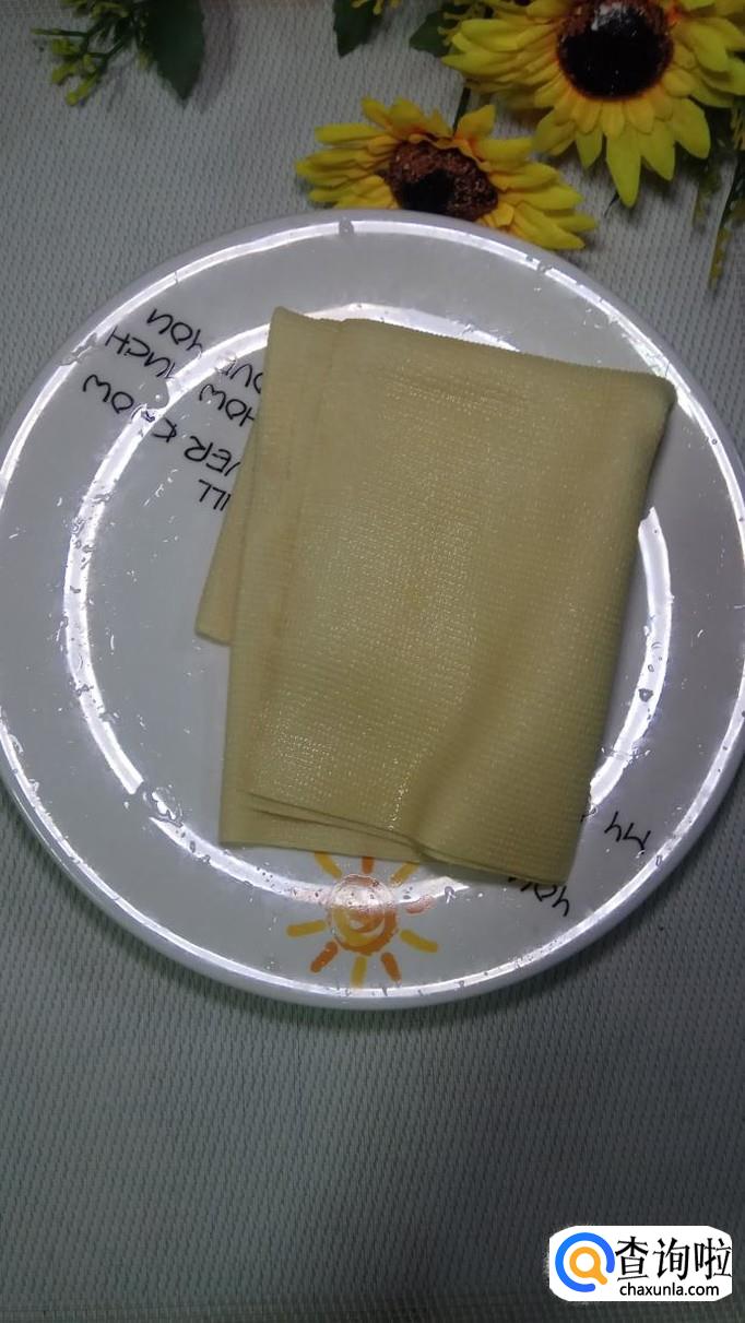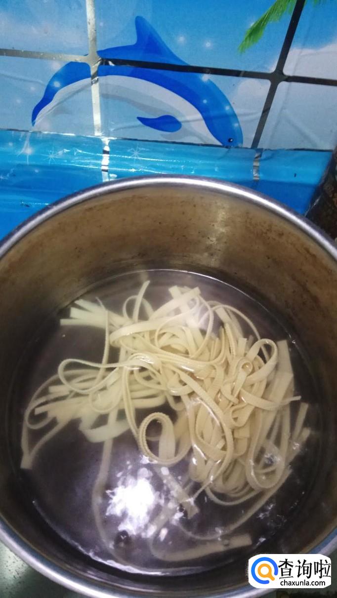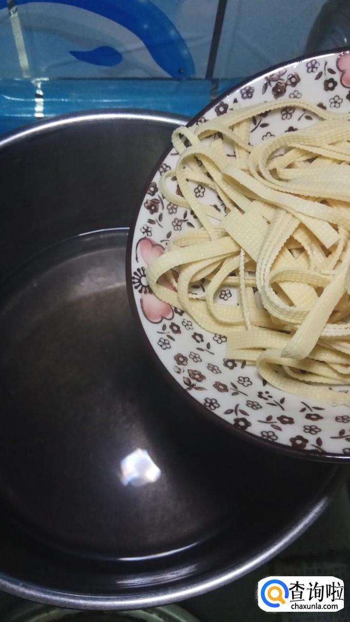 准备适量的豆腐皮,用清水洗一下,切成丝,放入锅中焯水,焯好水的豆腐皮,口感更好,生吃的话有些干涩。