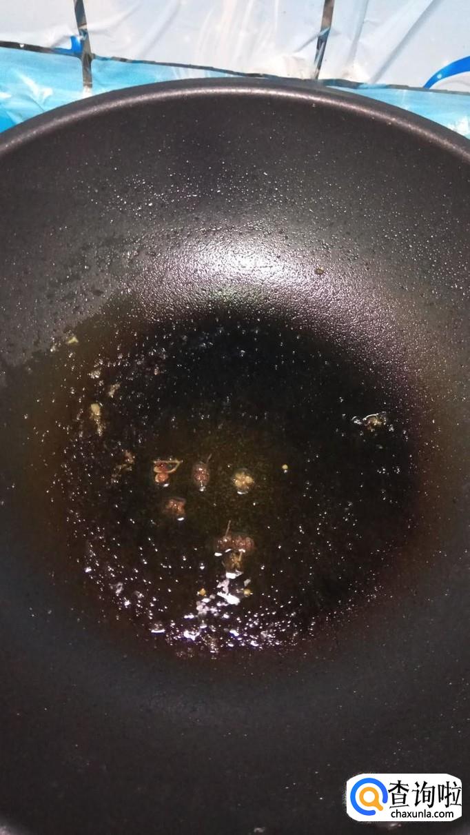 锅中烧热油,油热后放入花椒粒炒香,然后将油趁热浇在盘中,这样让食材香味更足。