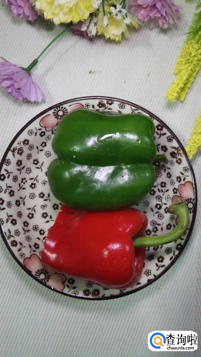 准备适量青椒和红椒,洗净后切成细丝,放在盘中,这会让食材的色泽更加好看。再准备适量姜,切成姜末,放在盘中。